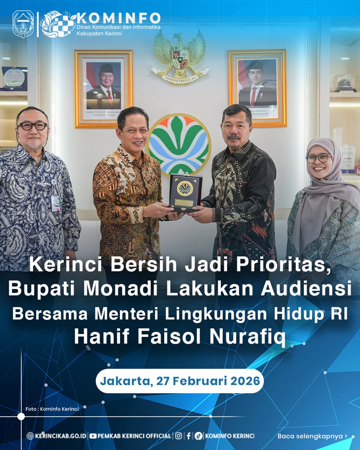 Jambireview.com, Kerinci – Monadi melakukan audiensi dengan Hanif Faisol Nurafiq di Jakarta pada 27 Februari 2026. Pertemuan tersebut membahas komitmen Pemerintah Kabupaten Kerinci dalam mewujudkan program “Kerinci Bersih” melalui pengelolaan sampah yang lebih terpadu dan berkelanjutan.